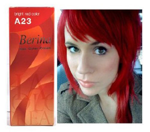 Berina Permanent Hair dye color cream # A23 Bright Red