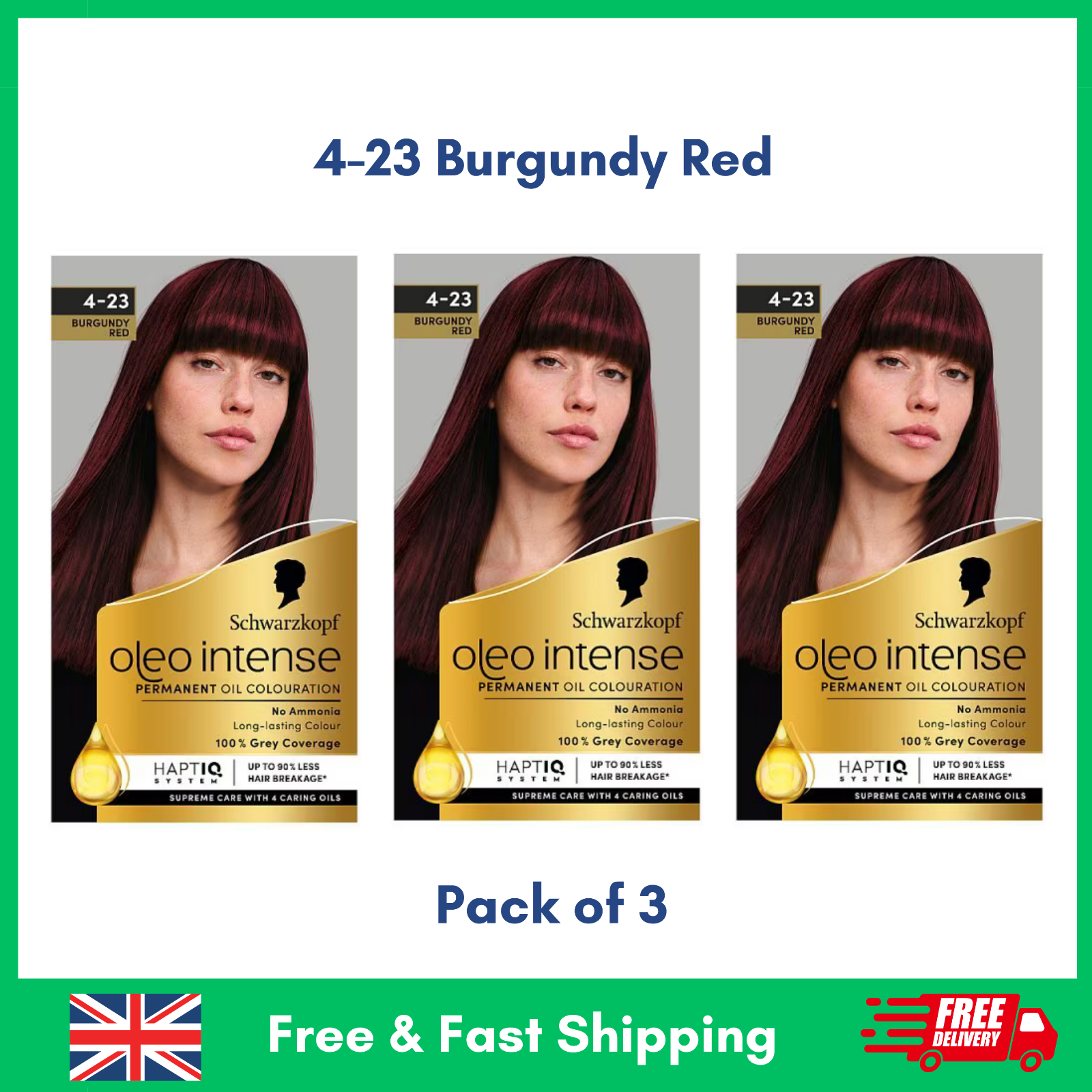 Schwarzkopf Oleo Intense Permanent Hair Dye Colour 423 BURGUNDY RED Pack of 3
