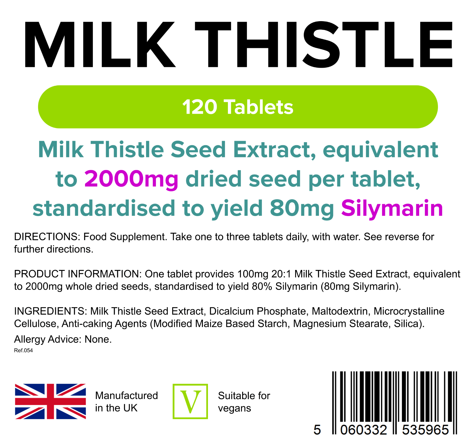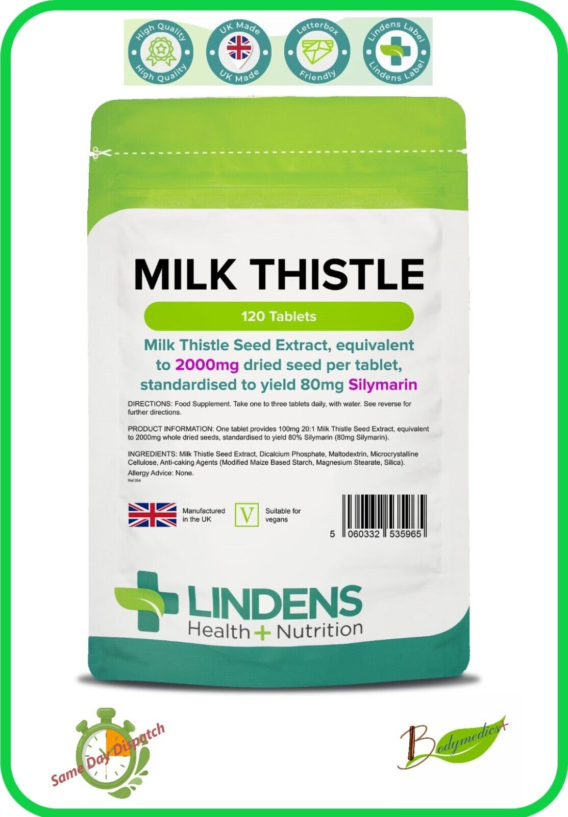 Milk Thistle 100mg 120 Tablets Pack, Natural Liver & Detox Supplement LINDENS UK