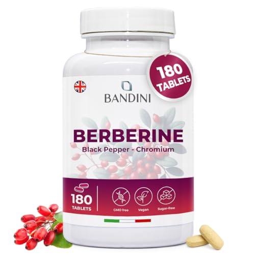 Bandini® Berberine Pure High Dosage | 180 Vegan Tablets - Berberin HCL from Berberis Aristata 97% + Chromium and Black Pepper | Maximum Absorption - Digestive, Liver, Intestinal Function