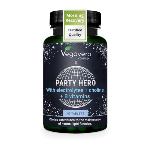 Vegavero Party Hero | Natural Recovery Supplement | 60 Tablets | Electrolyte and Vitamin Rebound | Choline Bitartrate Liver Protection* | Vegan