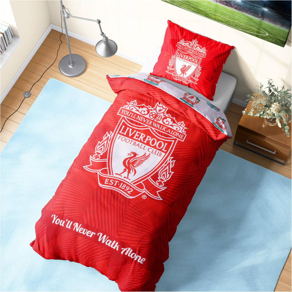 Liverpool FC Official Single Duvet Cover Set, Walk Alone Design | Red Reversible 2 Sided Football Stadium Bedding Cover Official Merchandise Including Matching Pillow Case