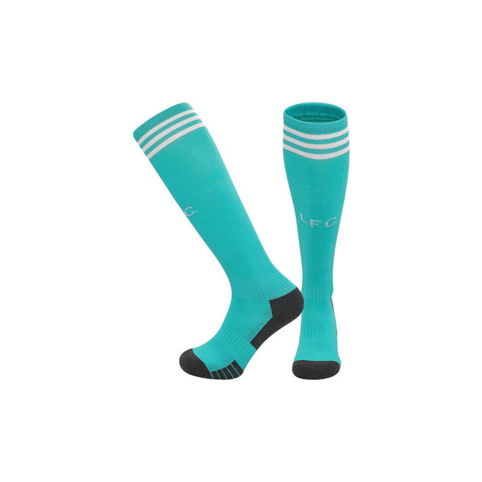 (EU 36-45, Liverpool Away Green) 25-26 New Kids Football Grip Socks & Long Football Training Socks - Breathable Cushioned Socks Children & Youth