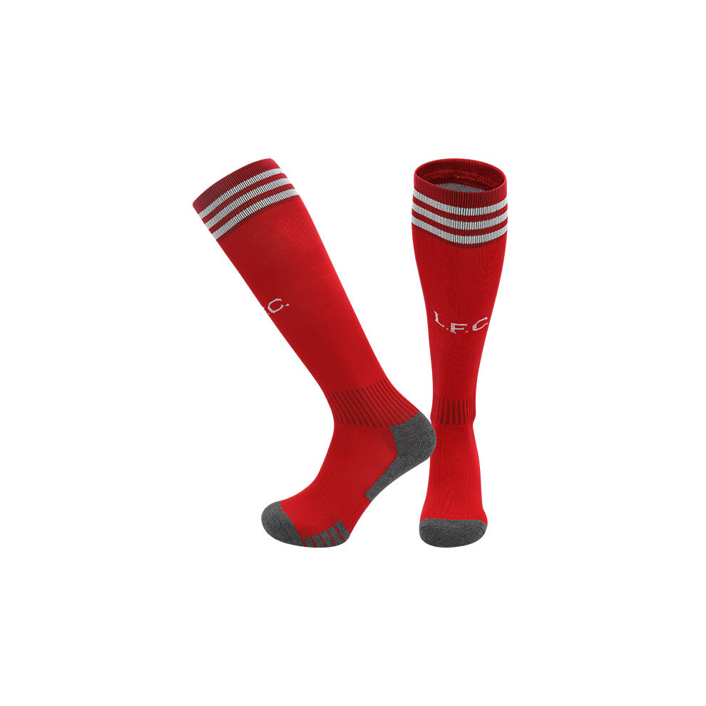 (EU 36-45, Liverpool Home) 25-26 New Kids Football Grip Socks & Long Football Training Socks - Breathable Cushioned Socks Children & Youth