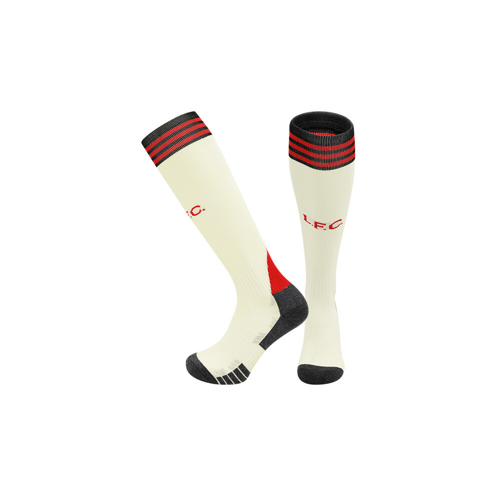 (EU 36-45, Liverpool Away White) 25-26 New Kids Football Grip Socks & Long Football Training Socks - Breathable Cushioned Socks Children & Youth
