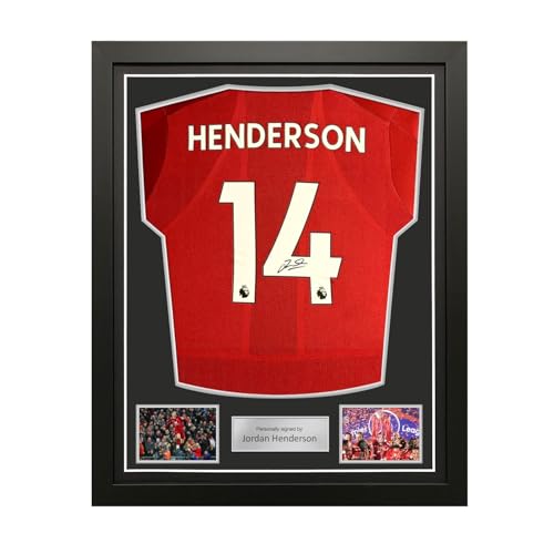 Exclusive Memorabilia Jordan Henderson Signed Liverpool 2019-20 Home Football Shirt. Standard Frame