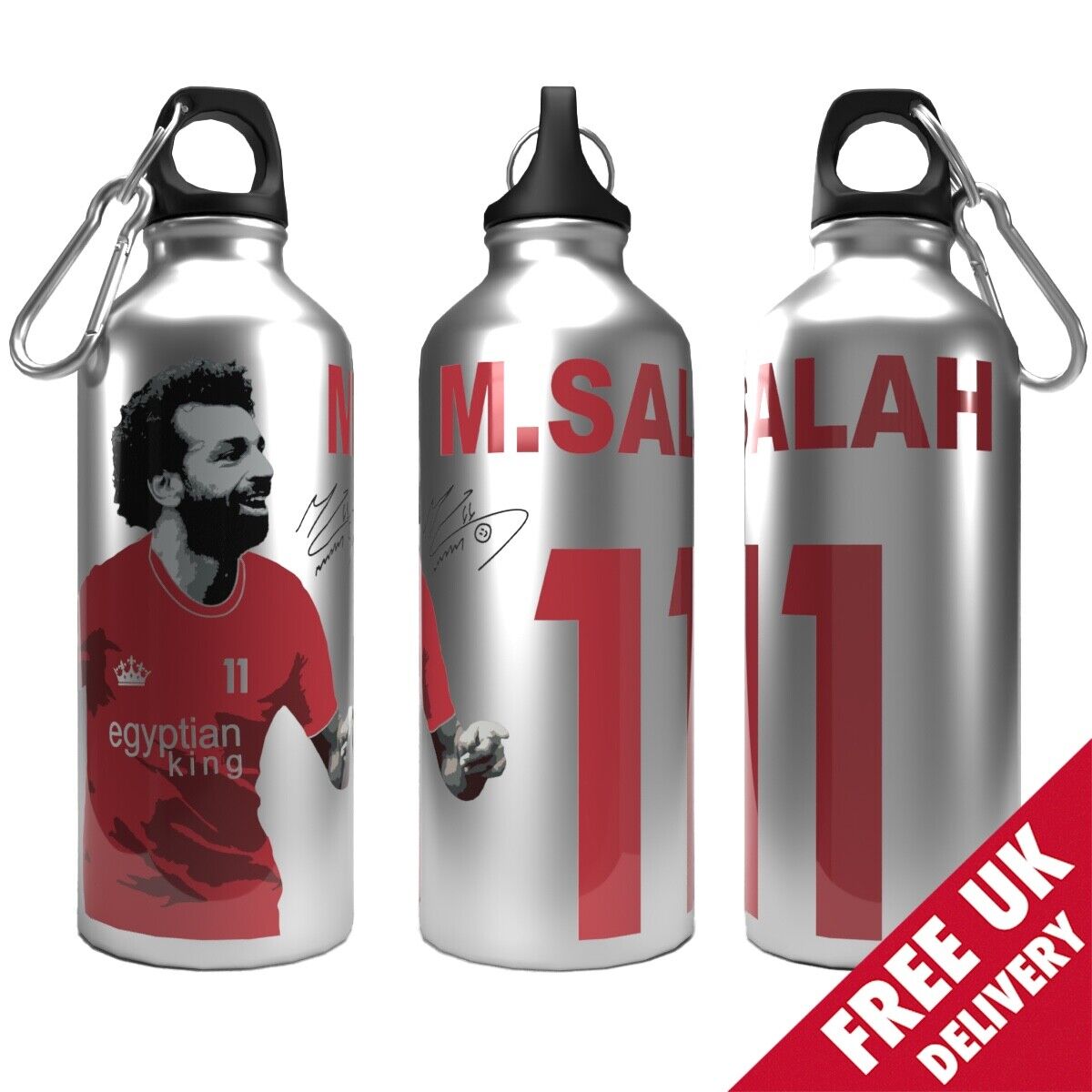 Liverpool Water Bottle Salah 750ml 2-Lid Aluminium Silver