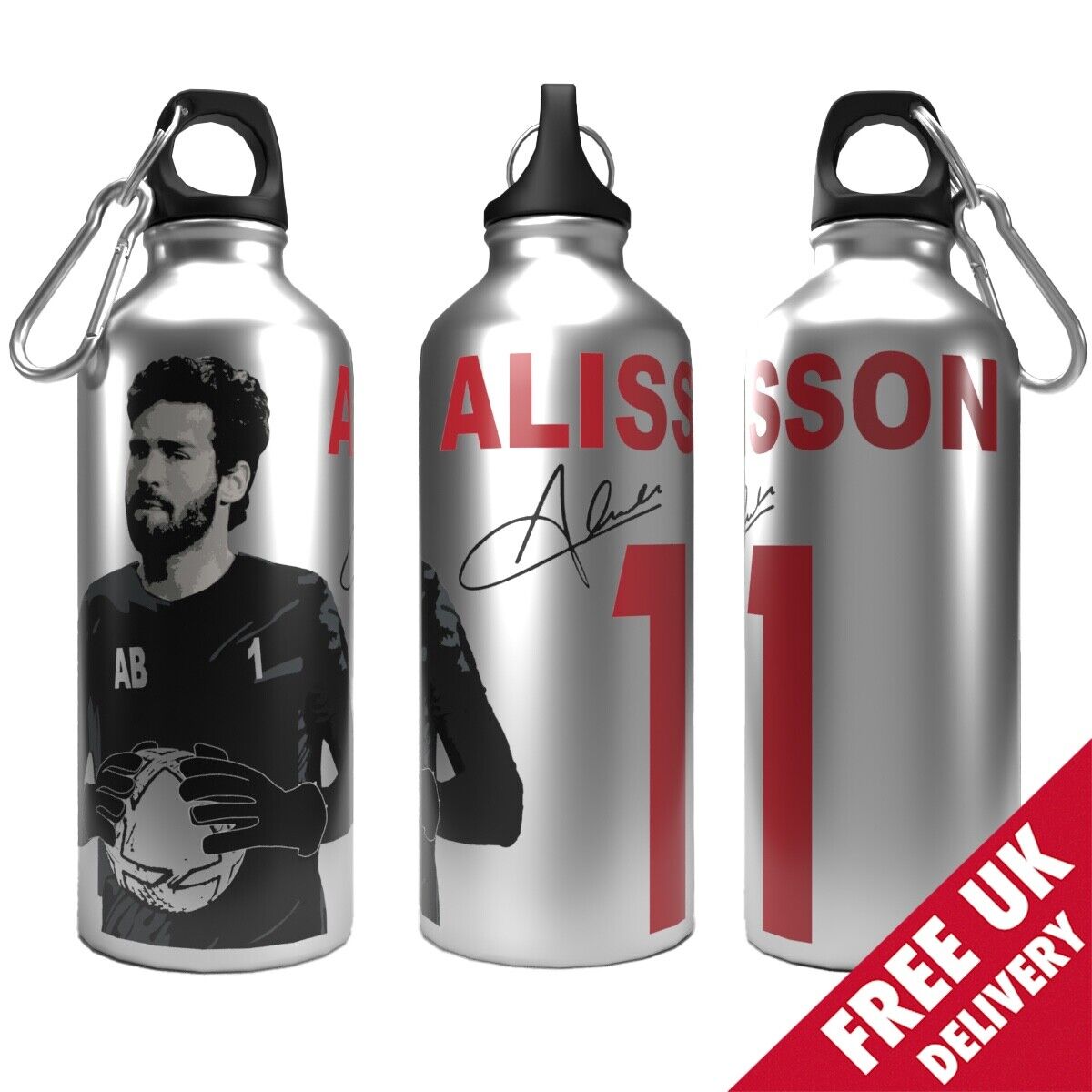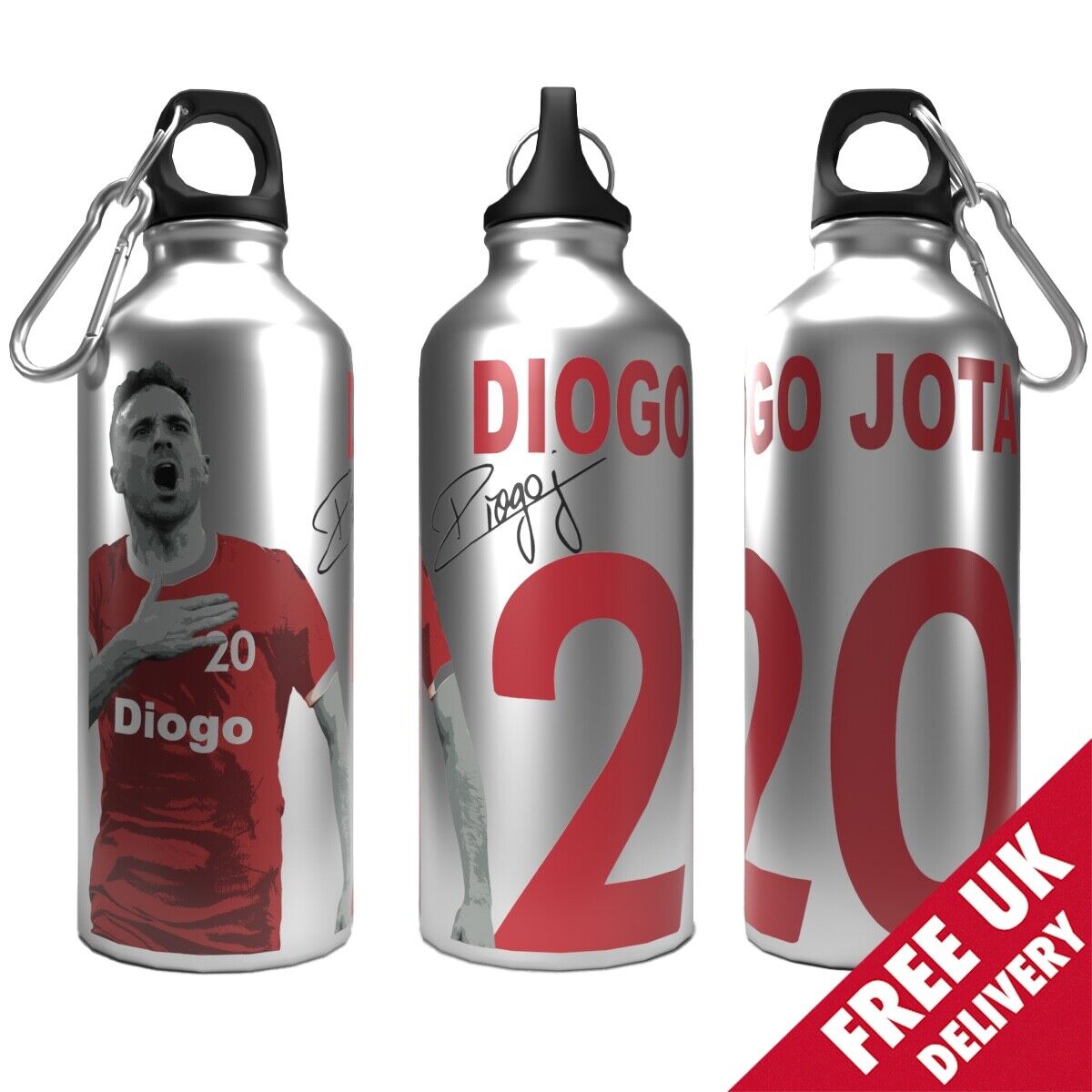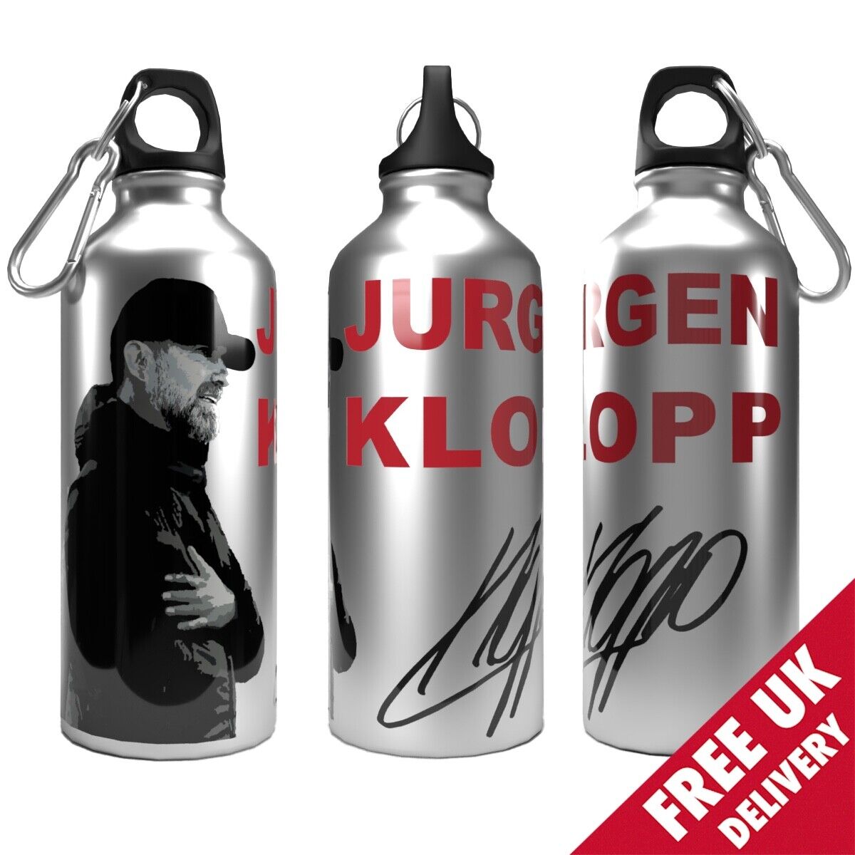 Liverpool Klopp Water Bottle 750ml Aluminium | 2 Lids + Carabiner
