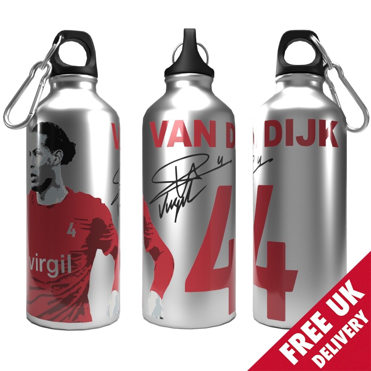 Liverpool Water Bottle Van Dijk 750ml 2-Lid Aluminium Silver