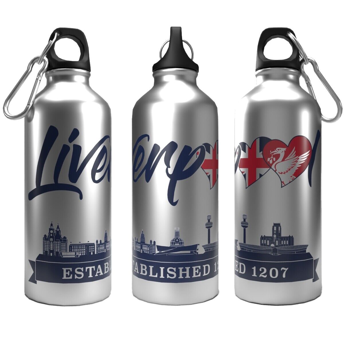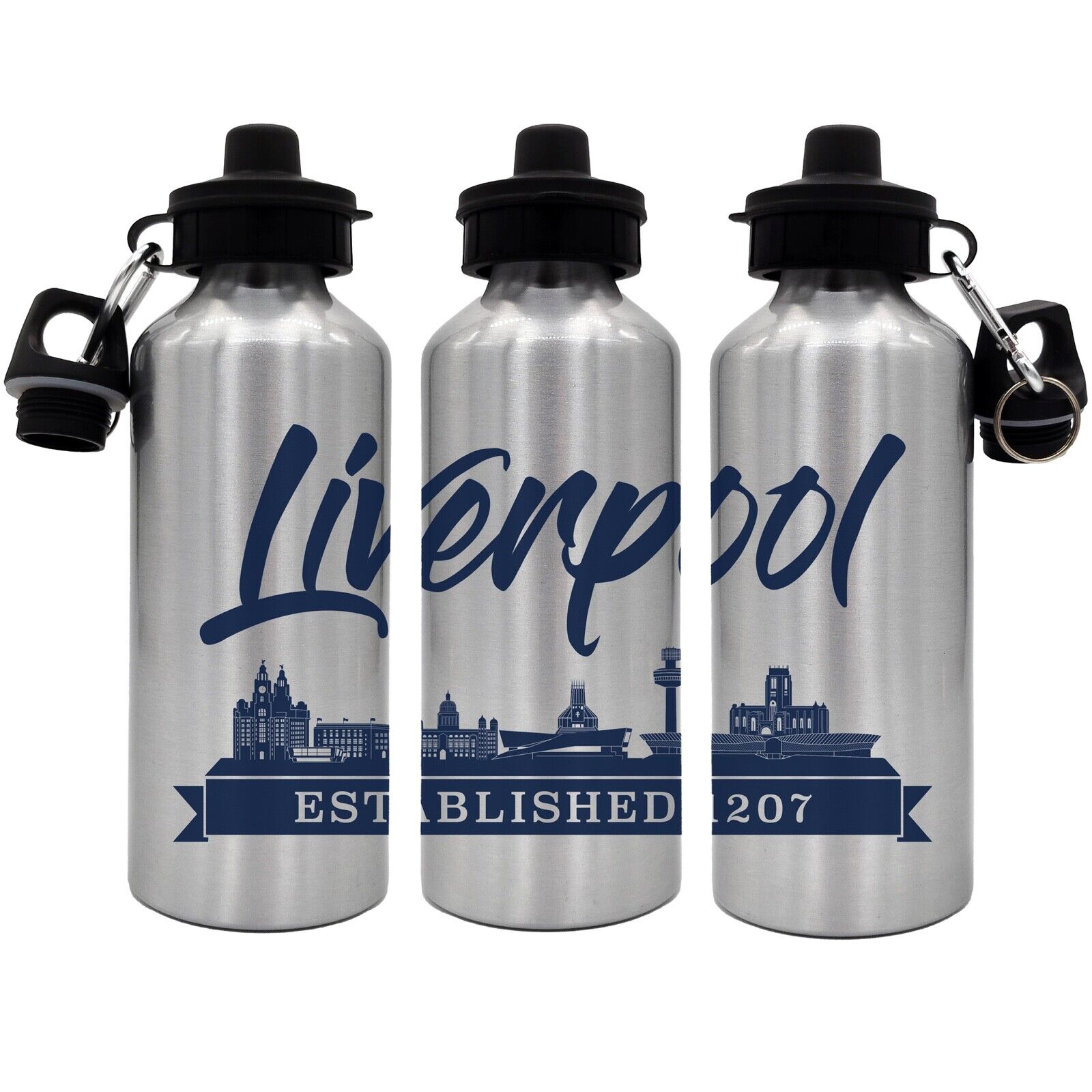 Liverpool Skyline Water Bottle 750ml Aluminium | 2 Lids + Carabiner