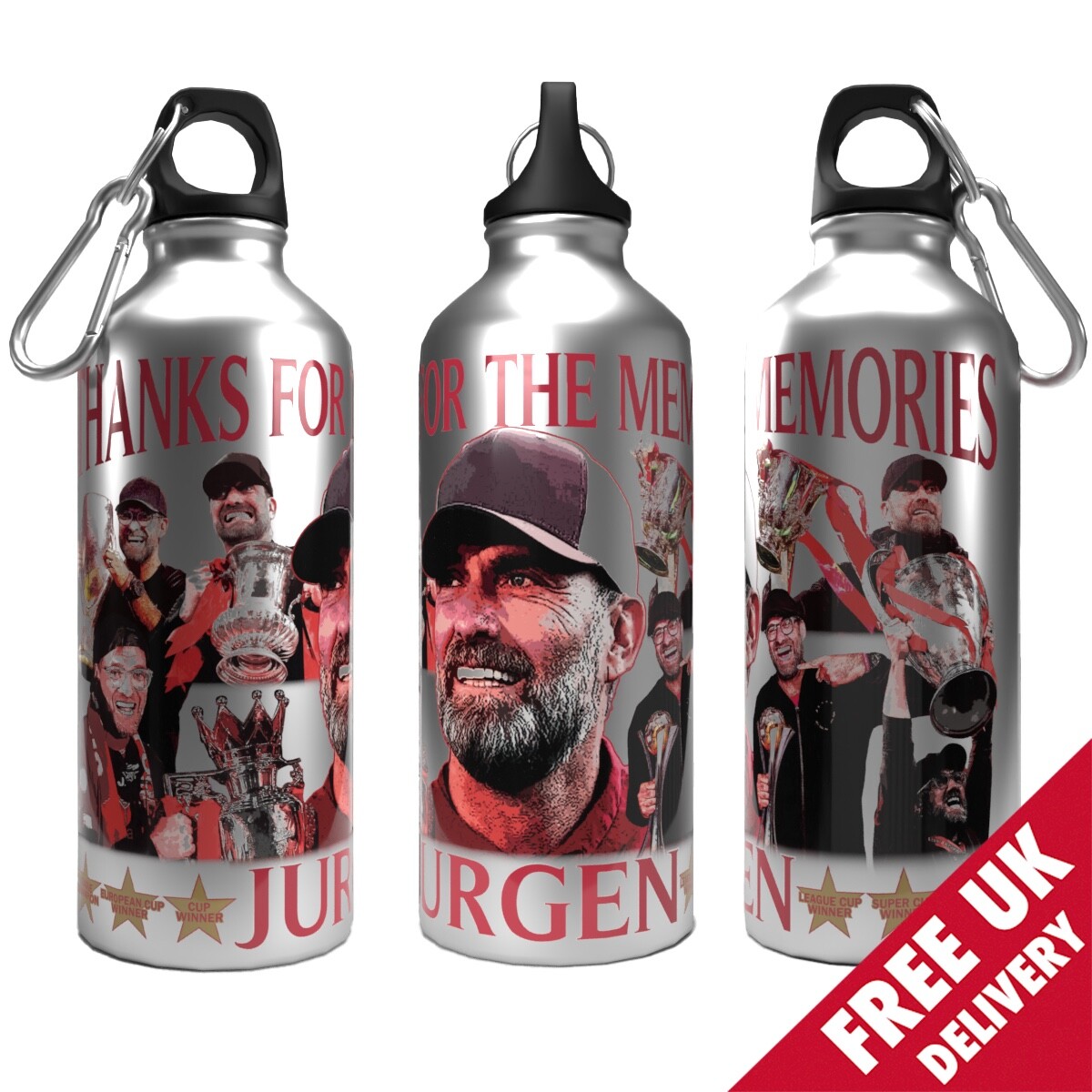 Liverpool Klopp Memories Water Bottle 750ml Aluminium | 2 Lids + Carabiner