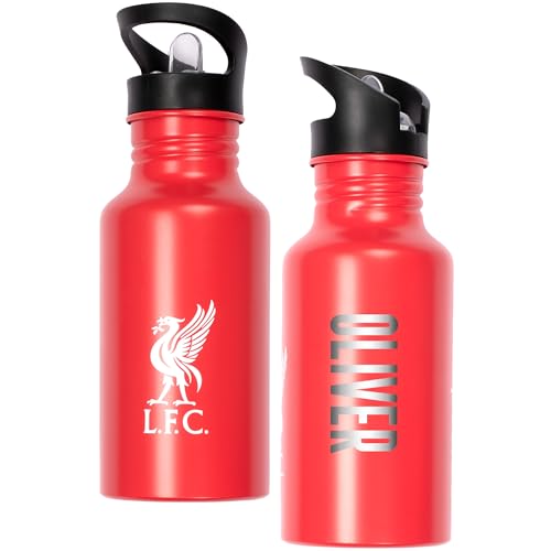 Liverpool F.C. Football Personalised Metal Water Bottle 500ml – Engraved Name School & Training Bottle – Gift for For Boys & Football Fans 100% Leakproof BPA Free Drink Bottle