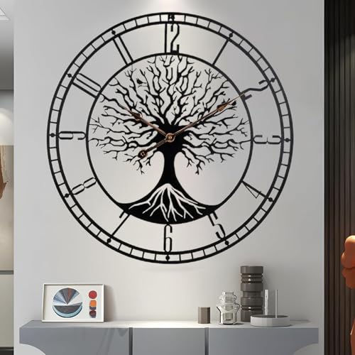 Large Tree of Life Clock Metal Black Wall Clock Big Wall Clock Home Decor Living Room Wall Clocks with Numbers Silent Mid-Century Clock Modern Family Tree Clock Wall