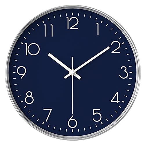 YTAONS 12 in Wall Clock Non-Ticking Quartz Silent Battery Operated Round Clocks Home Kitchen Office School Living Room Decor Clocks (Navy Blue)