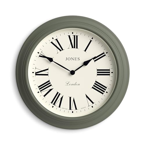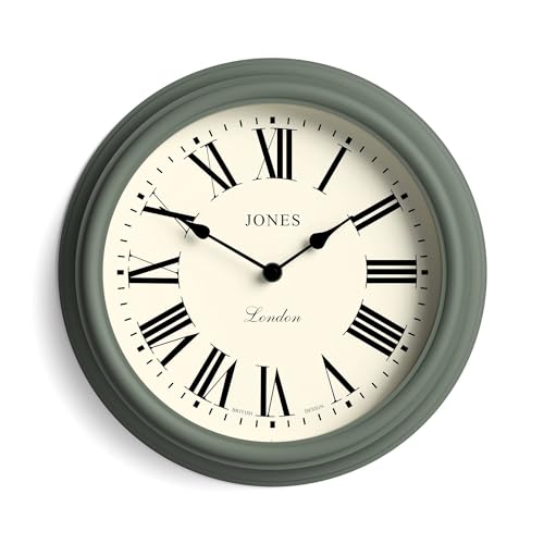 Jones Clocks® Supper Club wall clock | Large classic round clock | 40cm | Asparagus green | Roman numerals | Traditional design ideal for kitchen or living room