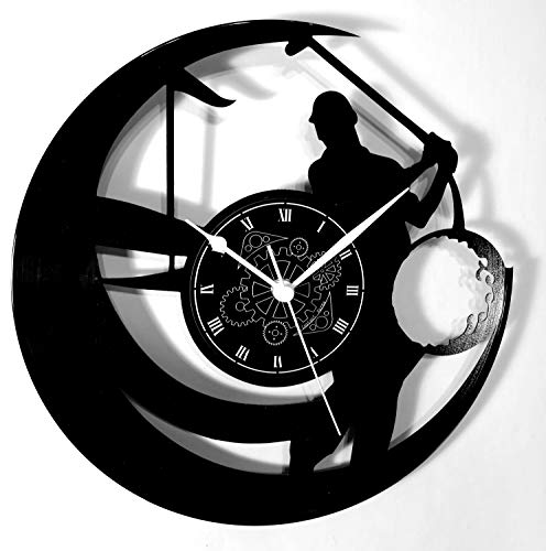Instant Karma Clocks | Golf Wall Clock with Golfer Silhouette and Club Detail | Silent No-Ticking | Perfect for Bedroom, Office, Studio, Kitchen, Living Room | Unique Decoration