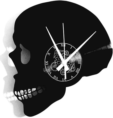 Instant Karma Clocks | Skull Wall Clock for Gothic Decor, Horror Fans, Tattoo Studios – Silent No-Ticking – Perfect for Bedroom, Office, Studio, Cabin, Living Room – Unique Decoration