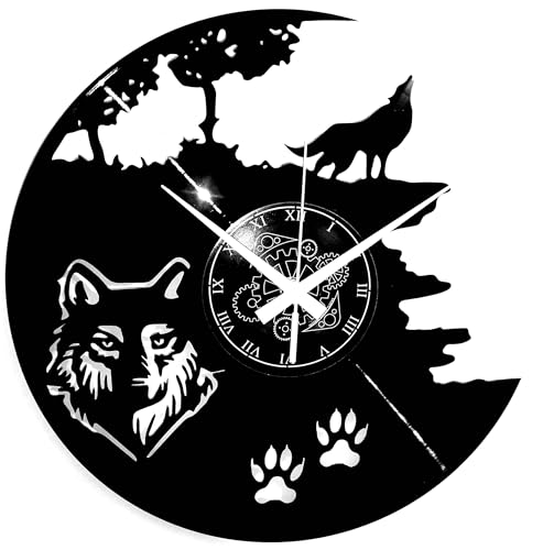 Instant Karma Clocks | Wolf Wall Clock – Silent No-Ticking – Perfect for Bedroom, Studio, Cabin, Office, Living Room | Modern Design Unique Decoration