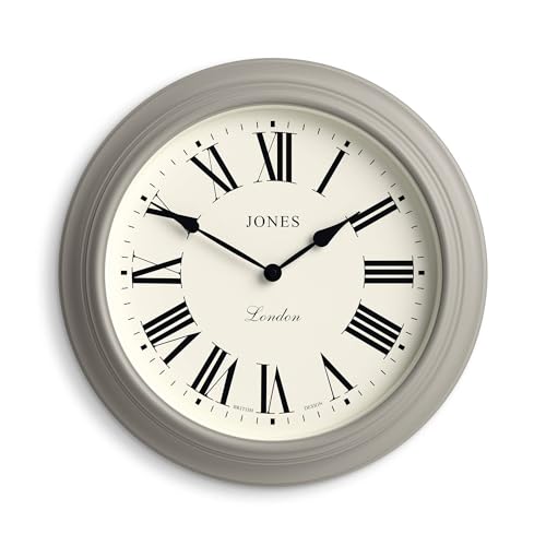 Jones Clocks® Supper Club wall clock | Large classic round clock | 40cm | Mid grey | Roman numerals | Traditional design ideal for kitchen or living room