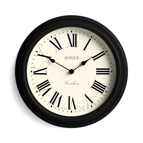 Jones Clocks® Venetian wall clock | Classic round clock | 30cm | Black | Roman numerals | Traditional design ideal for kitchen, living room or bedroom