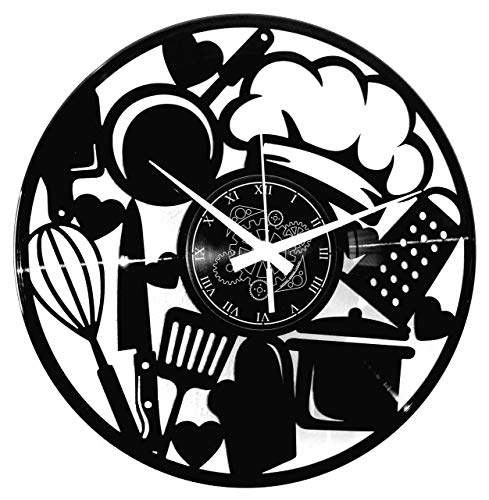 Instant Karma Clocks | Chef Kitchen Wall Clock with Cooking Tools Silhouette – Silent No-Ticking – Perfect for Bedroom, Office, Studio, Living Room – Unique Decoration