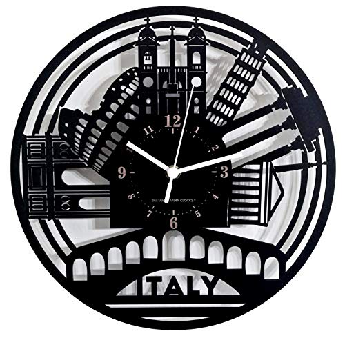 Instant Karma Clocks | Italy Wall Clock with Rome, Pisa, Venice and Milan Landmarks | Silent No-Ticking | Perfect for Bedroom, Office, Studio, Cabin, Living Room | Unique Decoration