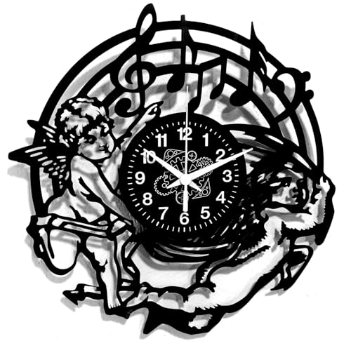 Instant Karma Clocks | Angels and Music Notes Wall Clock – Silent No-Ticking | Perfect for Bedroom, Office, Studio, Living Room | Unique Decoration