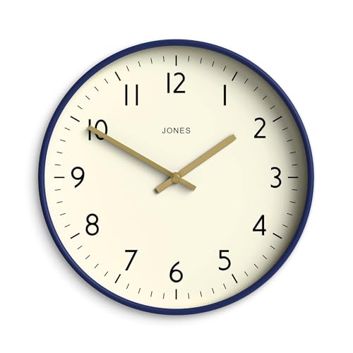 Jones Clocks® Studio wall clock | Modern round clock | 30cm | Dark navy blue | Easy to read numbers | Versatile design for kitchen, living room or office