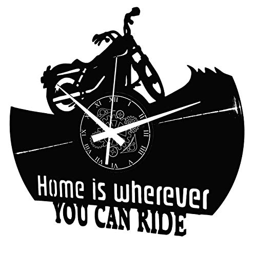 Instant Karma Clocks | Motorcycle Wall Clock – Biker, Helmet & Engine Silhouette – Silent No-Ticking | Perfect for Bedroom, Office, Studio, Cabin, Living Room – Unique Decoration