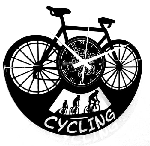 Instant Karma Clocks | Cycling Wall Clock with Bike and Riders Silhouette – Silent No-Ticking | Perfect for Bedroom, Office, Studio, Cabin, Living Room – Unique Decoration