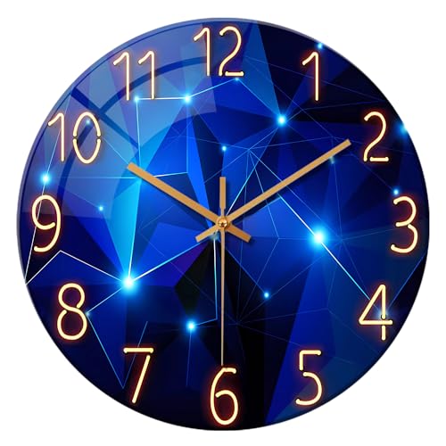 Constantplanet Blue Wall-Clocks for Living Room Decor - Kitchen Clocks Wall Battery Operated - 12 Inch Round Glass Wall Clock Silent Non-Ticking