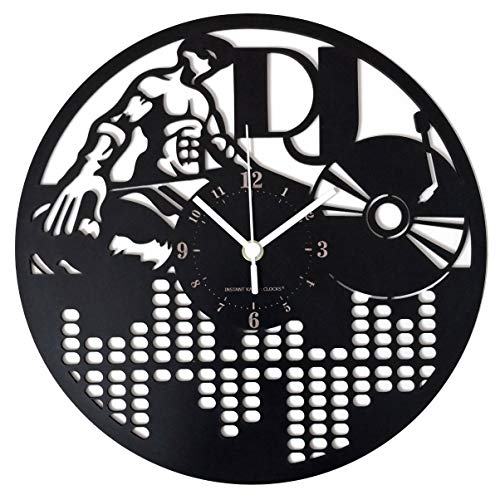 Instant Karma Clocks | DJ Wall Clock with Turntable, Vinyl and Equalizer Design | Silent No-Ticking | Perfect for Bedroom, Office, Studio, Cabin, Living Room | Unique Decoration