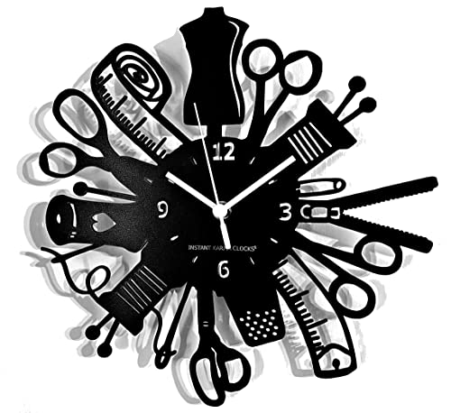 Instant Karma Clocks | Sewing and Tailoring Wall Clock with Dressmaker Silhouette and Tools | Silent No-Ticking | Perfect for Bedroom, Office, Studio, Cabin, Living Room | Unique Decoration