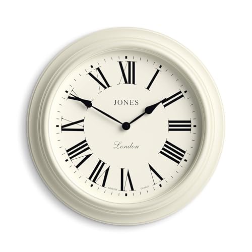 Jones Clocks® Supper Club wall clock | Large classic round clock | 40cm | Pale cream | Roman numerals | Traditional design ideal for kitchen or living room