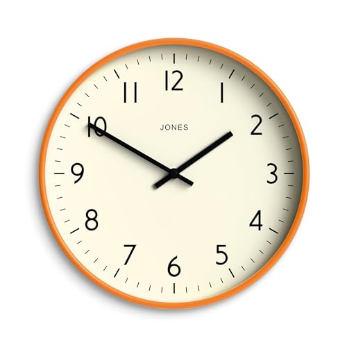 Jones Clocks® Studio wall clock | Modern round clock | 30cm | Orange | Easy to read numbers | Versatile design for kitchen, living room or office