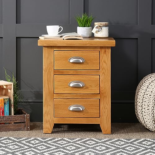 The Furniture Market 3 Drawer Bedside, Nightstand, Lamp or End Table for Bedroom and Living Room - Cheshire Oak - Freestanding Traditional Fully Assembled Drawer Set - H635 x W530 x D410mm