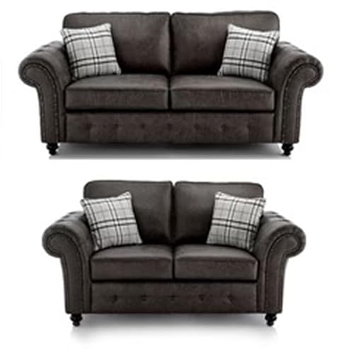 Furniture 786 Faux Leather Settee - Chesterfield 3+2 Seater Sofas - Comfy Seated Couch - High Back Seaters Couches - Dual Arm Settees - Leathers Sofa Suites for Indoors Living Room (Brown, 3+2 Set)