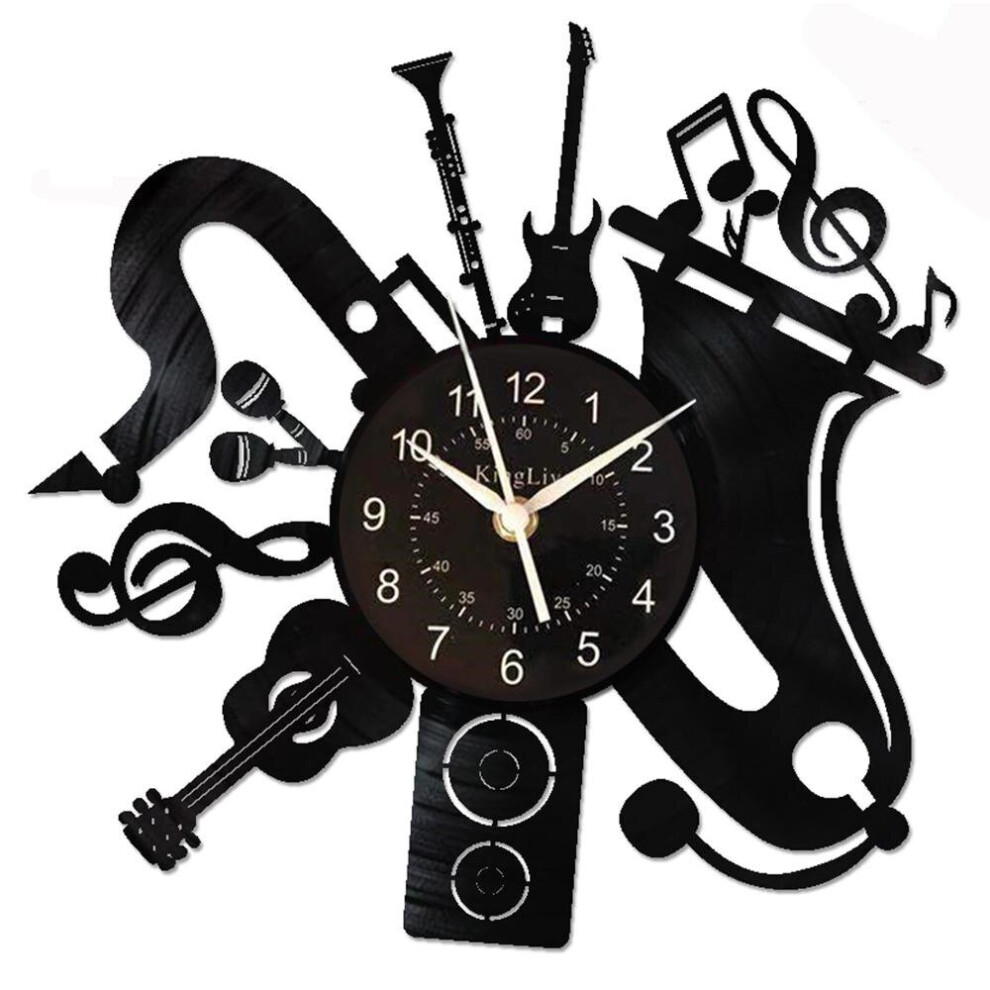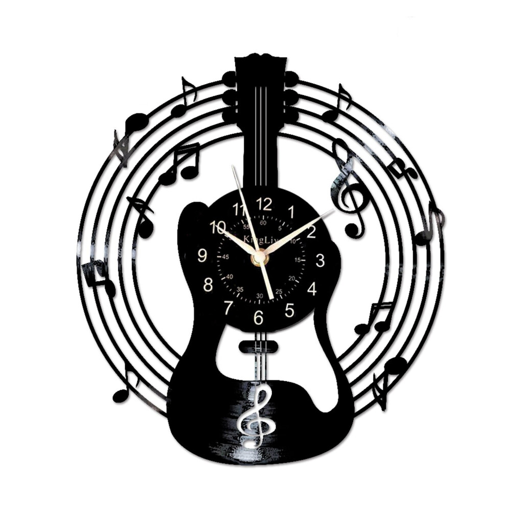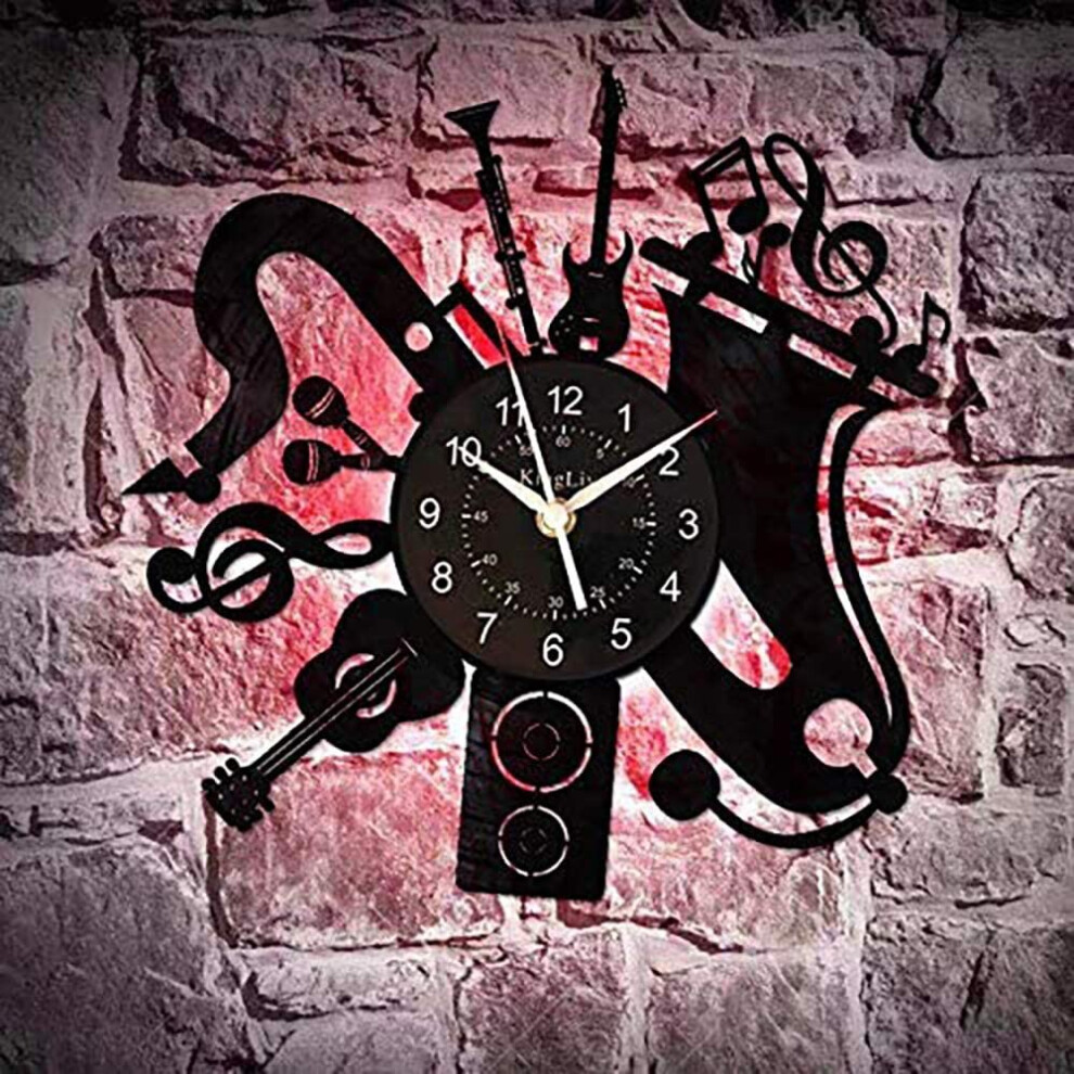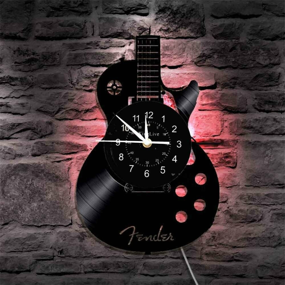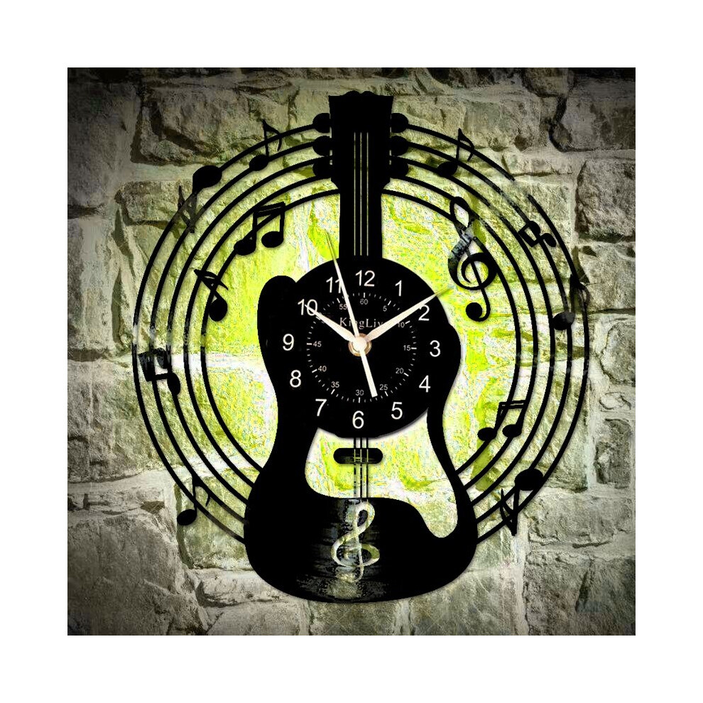 (WITH LED) Home Decoration Music Element Guitar Vinyl Record Wall Clock,Living Room Wall Clock,With Or Without LED Backlight Can Choose