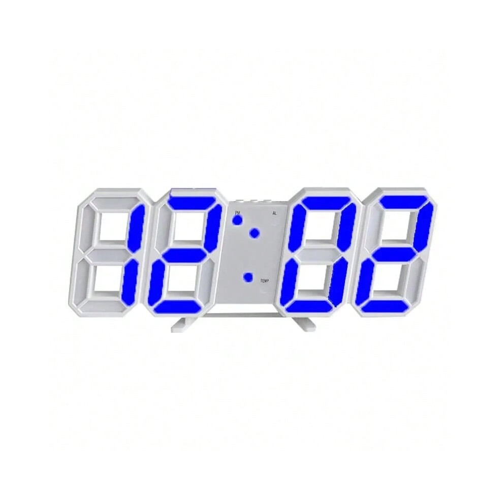 (White body-blue word) 3D Led Wall Clock From Original Manufacturer Ins Style Korean Alarm Clock Living Room Digital Clock With Cross-Border Design
