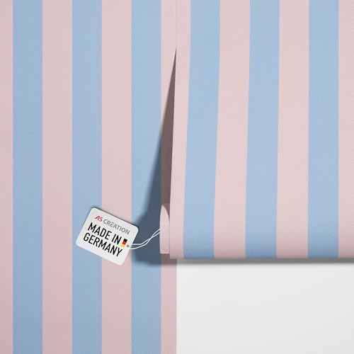 New Walls Non-Woven Wallpaper Stripes Pink Blue Light Textured & Matte Wallpaper for Living Room, Children's Room, Bedroom | 10.05 x 0.53 m