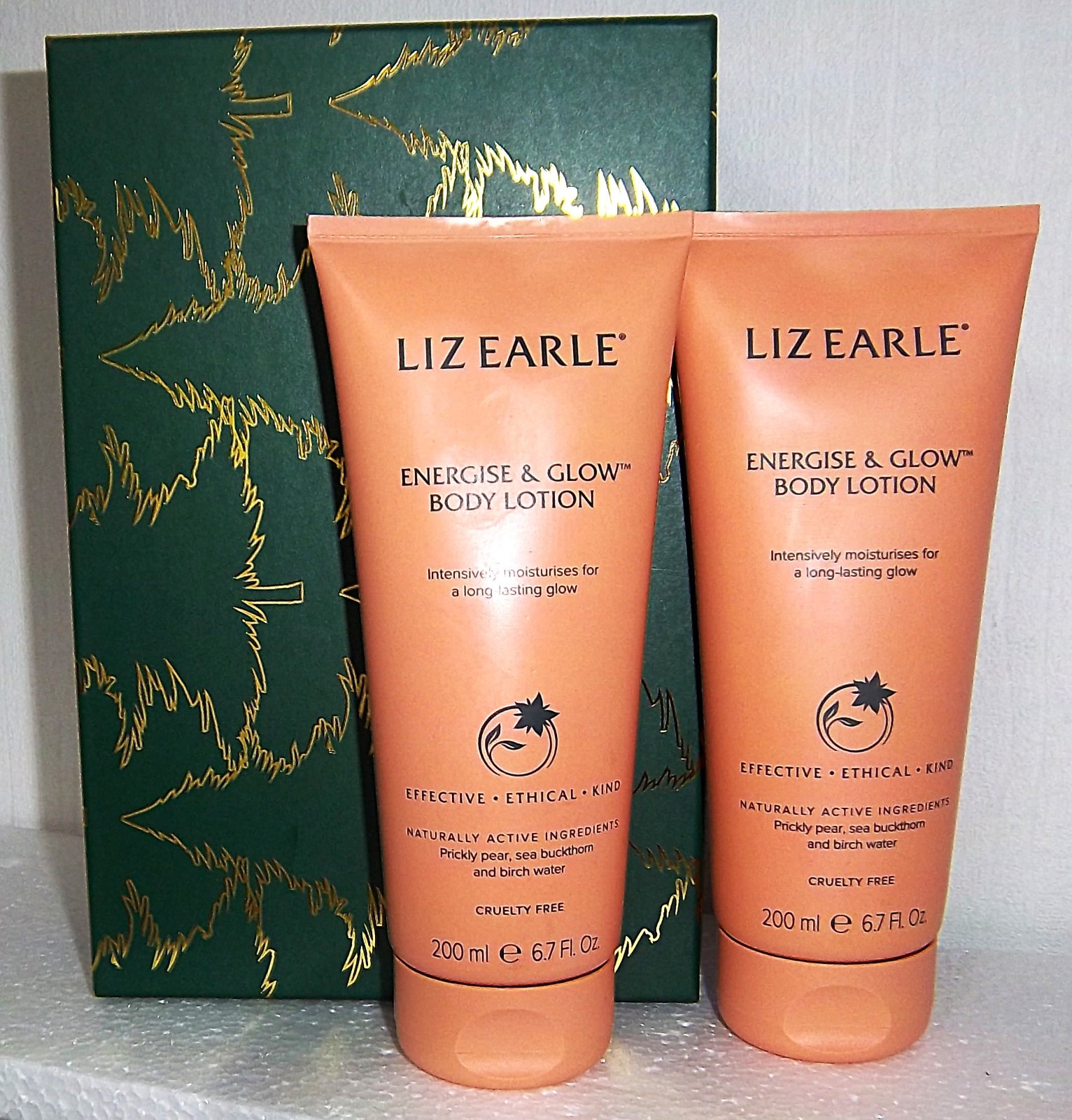 LIZ EARLE ENERGISE & GLOW BODY LOTION 200ML x 2 PLUS FREE GIFT BOX