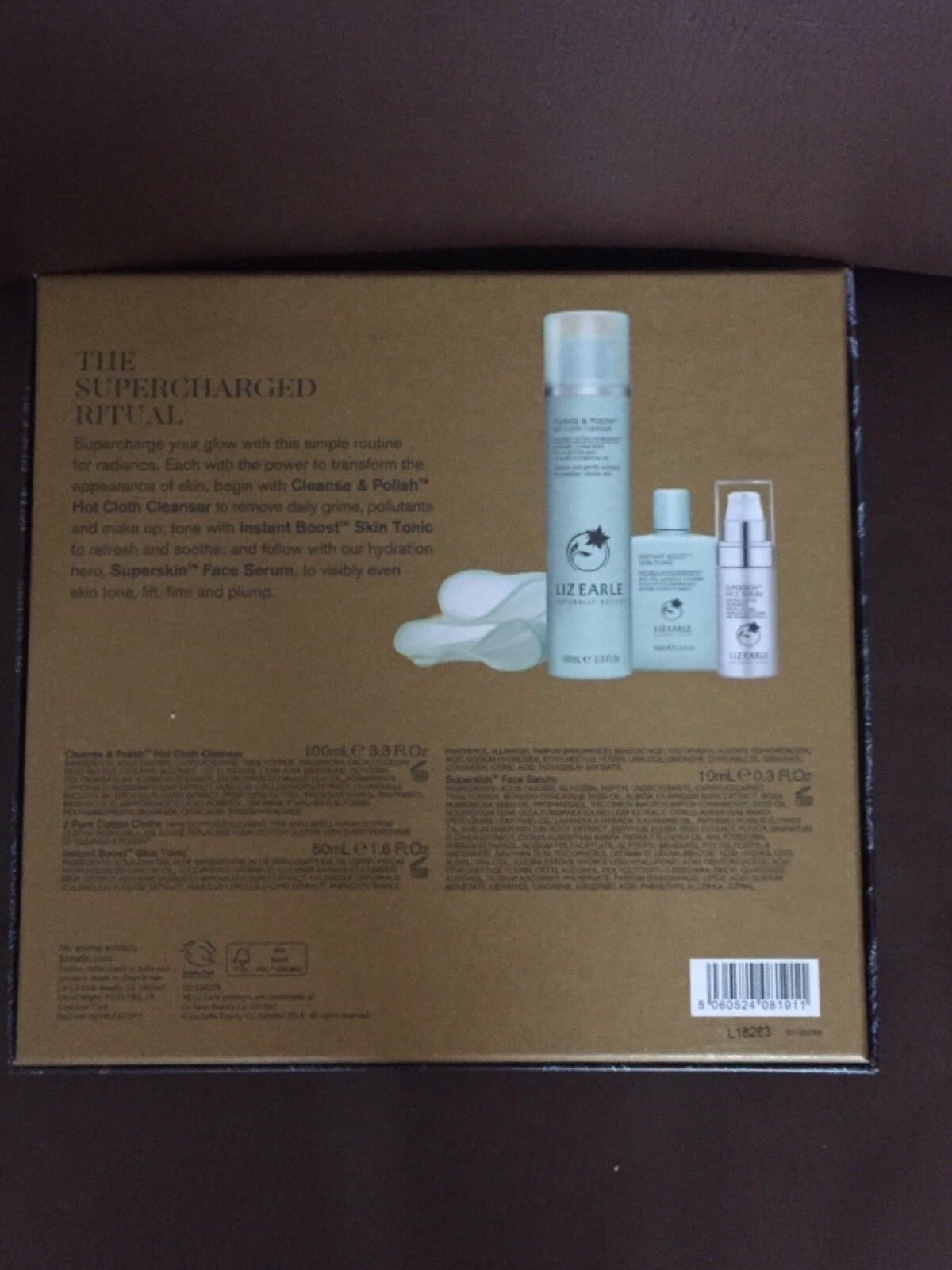 Liz Earle Set The Supercharged Ritual Cleanser cloths tonic face serum new boxed