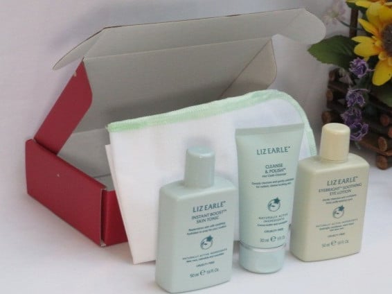 Liz Earle Radiant Skin Gift Set Cleanse Polish Skin Tonic Eyebright Cloths Hook