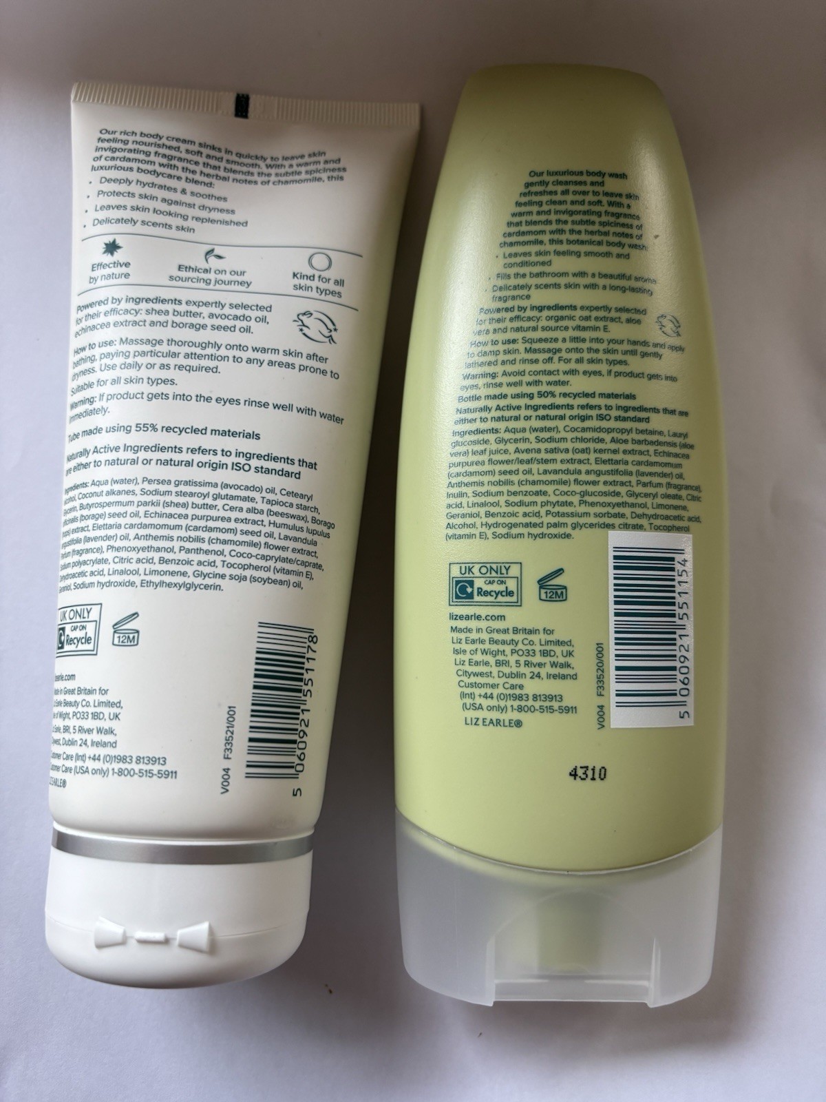 Liz Earle Cardamom & Chamomile Body Wash & Body cream 200ml each NEW