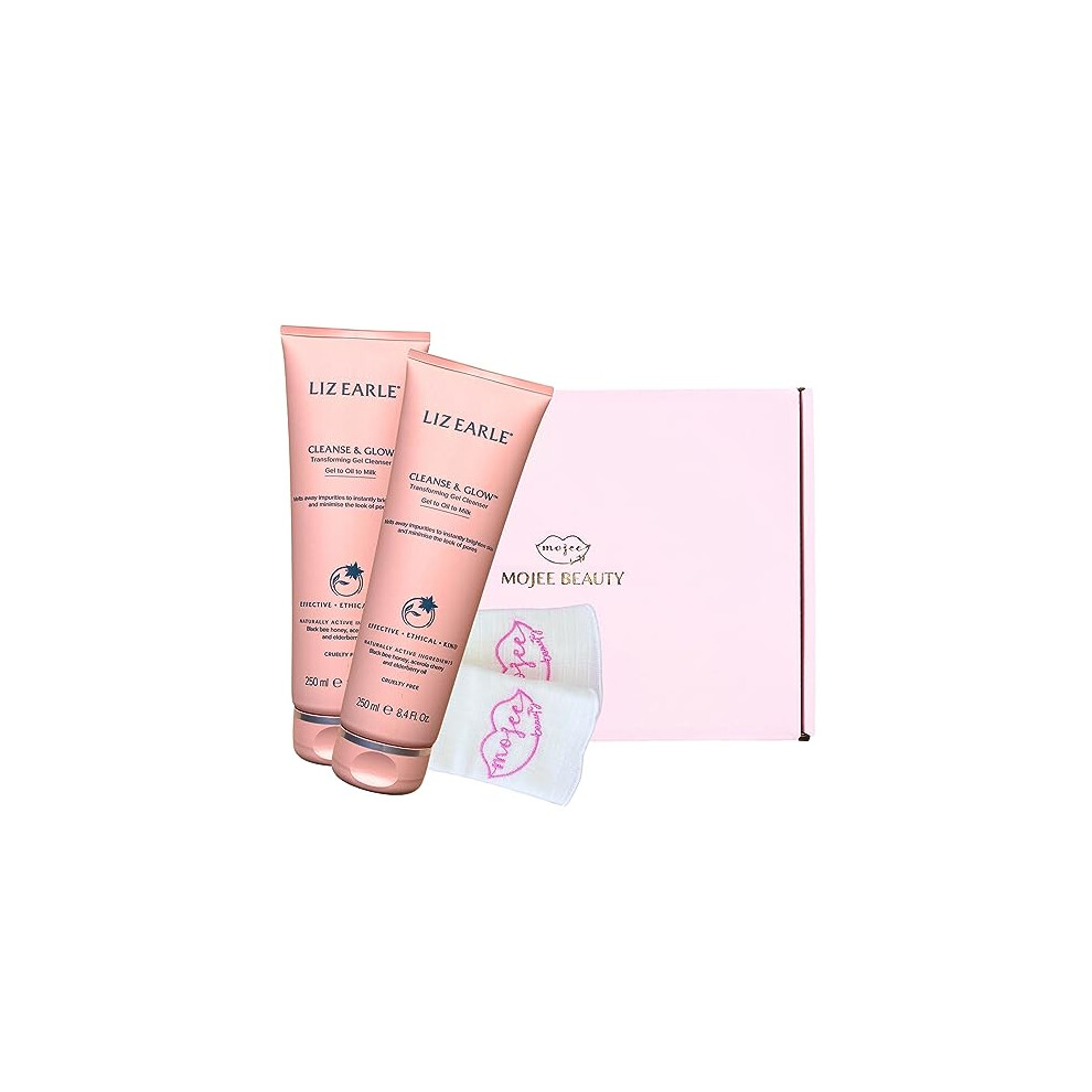 Skincare Bundle With 2 x Liz Earle Cleanse & Glow Transforming Gel Cleanser 250ml, pack of 2 Mojee Beauty Muslin Face Cloths and Mojee Beauty Gift Box
