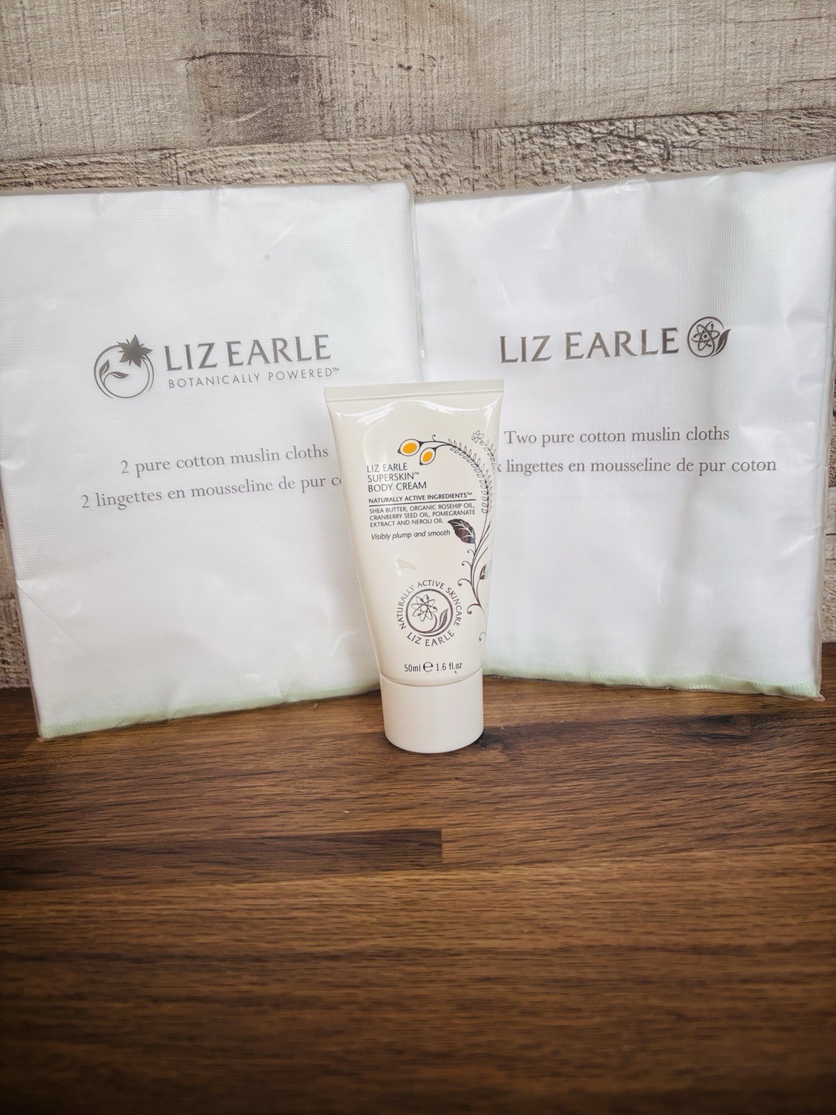 Liz Earle superskin body cream 50ml new foil sealed Travel Size + 2 Cloths