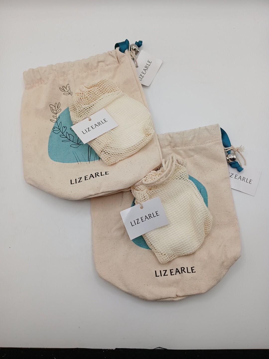 2X Liz Earle 100% Cotton Cosmetics Bag SKIN CARE- REUSABLE FACE CLOTHS C02