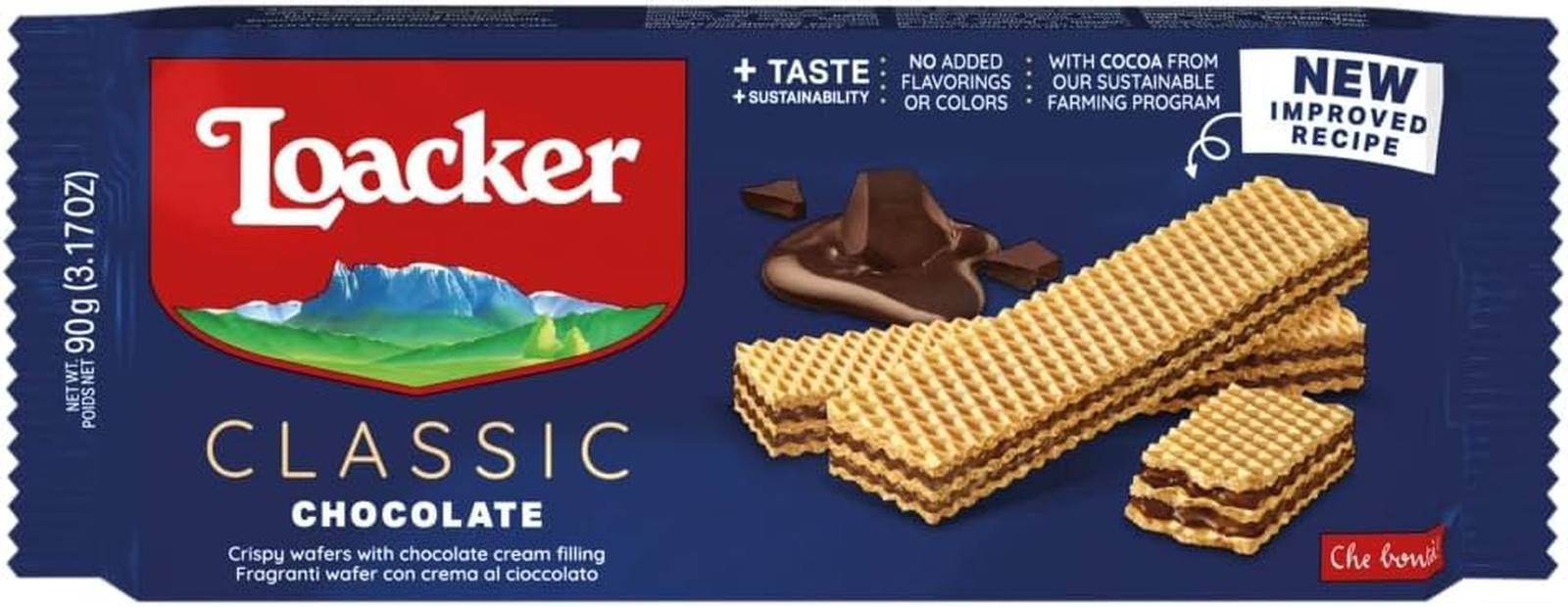 Loacker Wafers Chocolate Flavor Wafer Classic Italian Biscuits 90 G (Pack of 1)