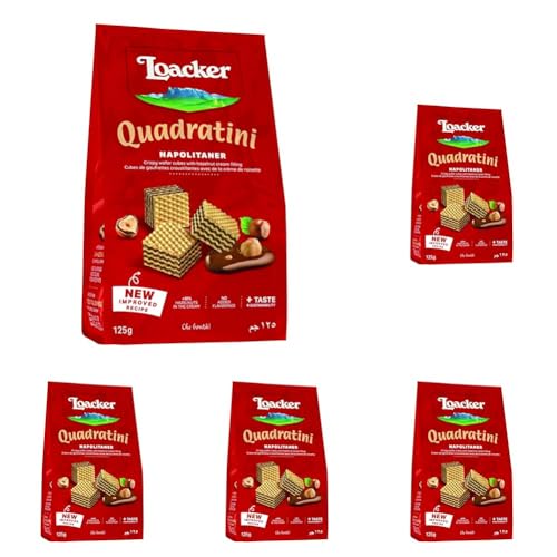 Loacker Wafers, Napolitaner Hazelnut Quadratini Mini Wafer Biscuits, Italian Biscuits, Bite Size Sharing Bag, All Natural Ingredients, 125g (Pack of 5)