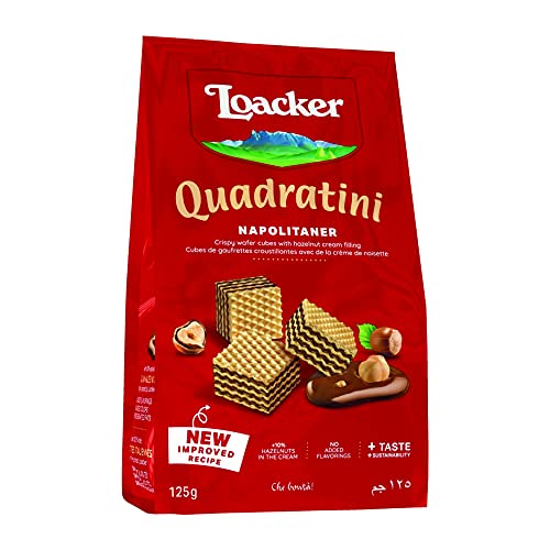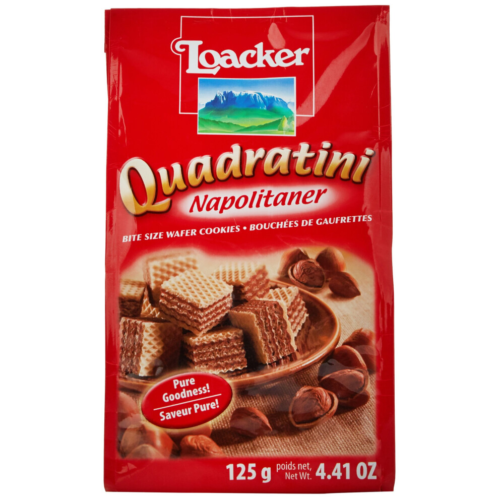 Loacker Wafers, Napolitaner Hazelnut Quadratini Mini Wafer Biscuits, Italian Biscuits, Bite Size Sharing Bag, All Natural Ingredients, 125g